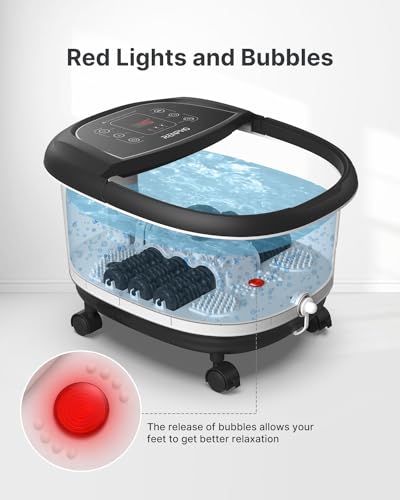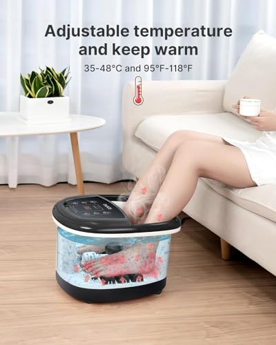 【Conforta i tuoi piedi stanchi】- Il massaggiatore elettrico per la cura dei piedi utilizza acqua, rulli massaggianti e calore per fornire calore. Il massaggiatore per i piedi è adatto a persone anziane, insonni, atleti, persone con i piedi freddi e altro ancora.