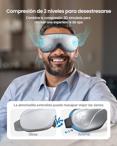 Nueva almohadilla extendida con amasamiento y presión – Nuestro Masajeador de Ojos integra masaje, compresión y vibración con la almohadilla extendida de nuevo diseño que puede masajear mejor la sien. Bueno para reducir la fatiga ocular para cualquier persona que trabaja largos días o estudiar hasta tarde en la noche.